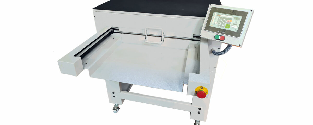 Flat combining machine with double plate with single heating plate and special air pillow for heavy pressure, on metal stand. Dims cm 40x60.